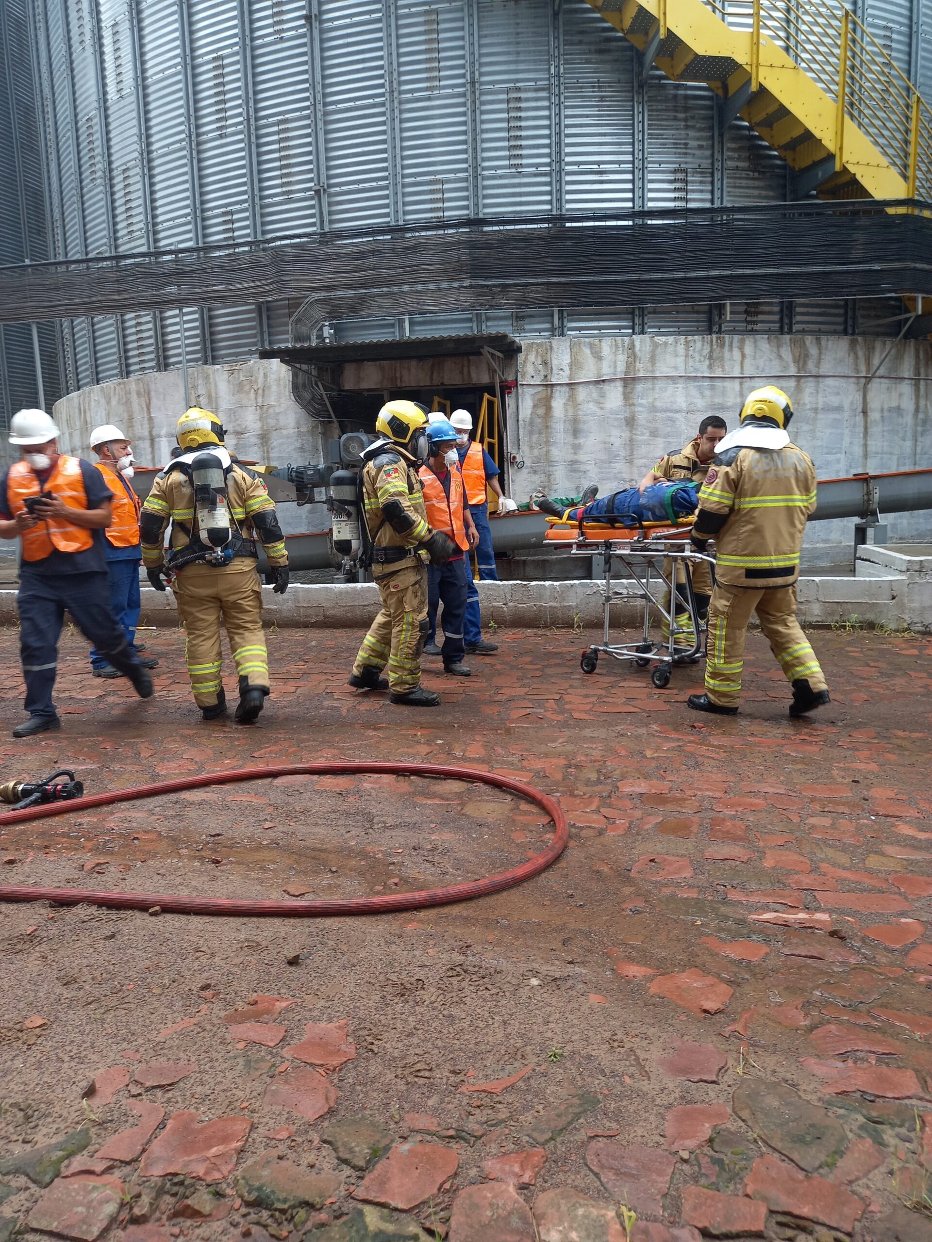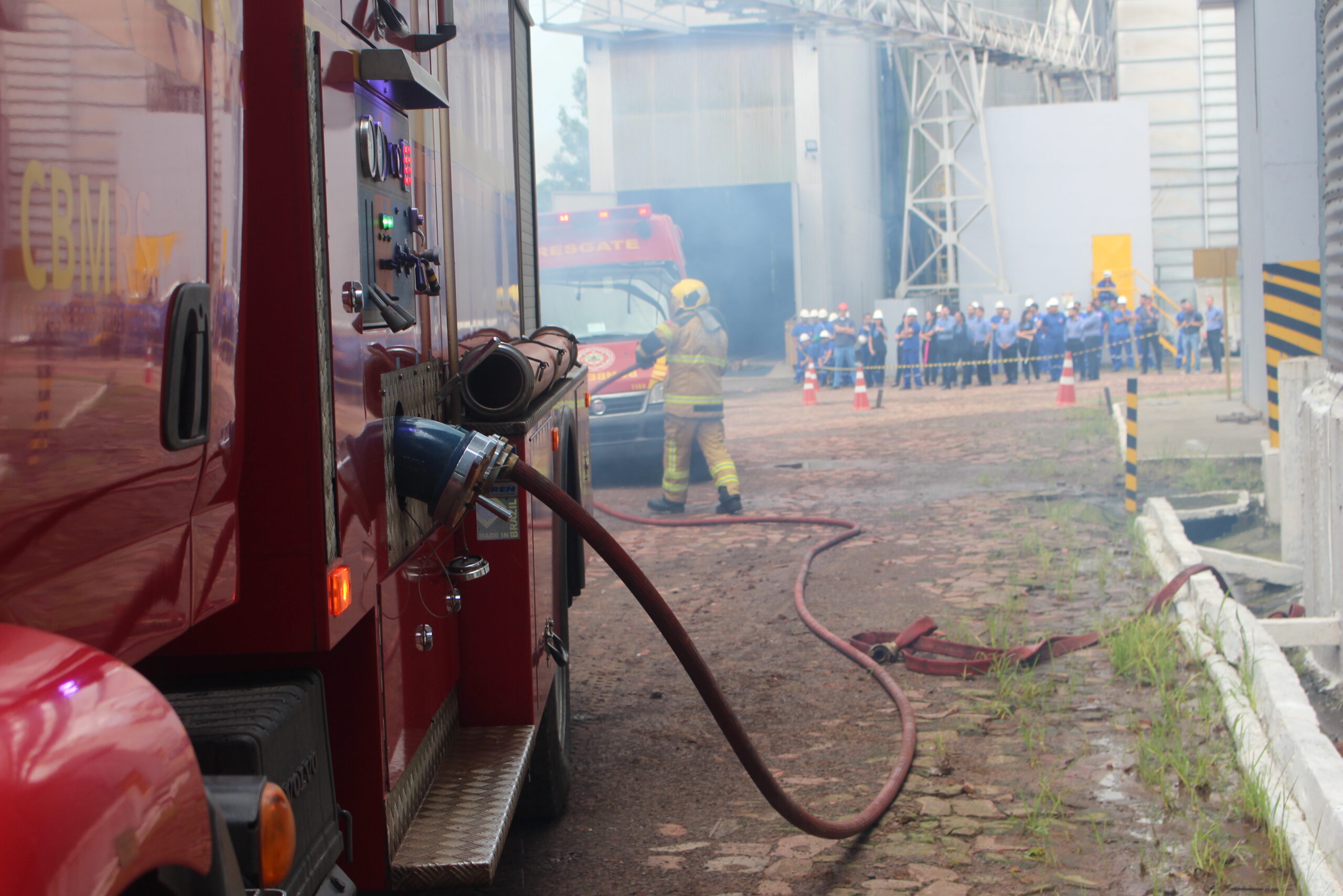 Como parte das atividades da semana foi realizado um Simulado de Resgate em Altura e Espaço Confinado em parceira com o Corpo de Bombeiros e Equipe de Brigadistas da empresa.
