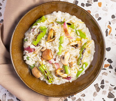 Cozinhar o arroz PRÓ-INTEGRAL PILECCO NOBRE com o caldo e reservar. Esquentar o azeite na frigideira, dourar a cebola e o alho, juntar a linguiça campeira cortada em rodelas, as ervas picadas e refogar por 5 minutos.