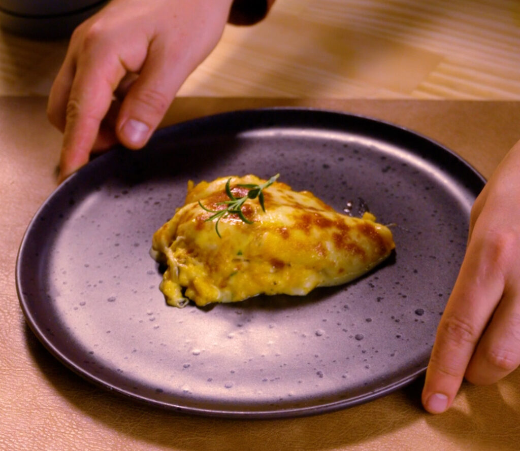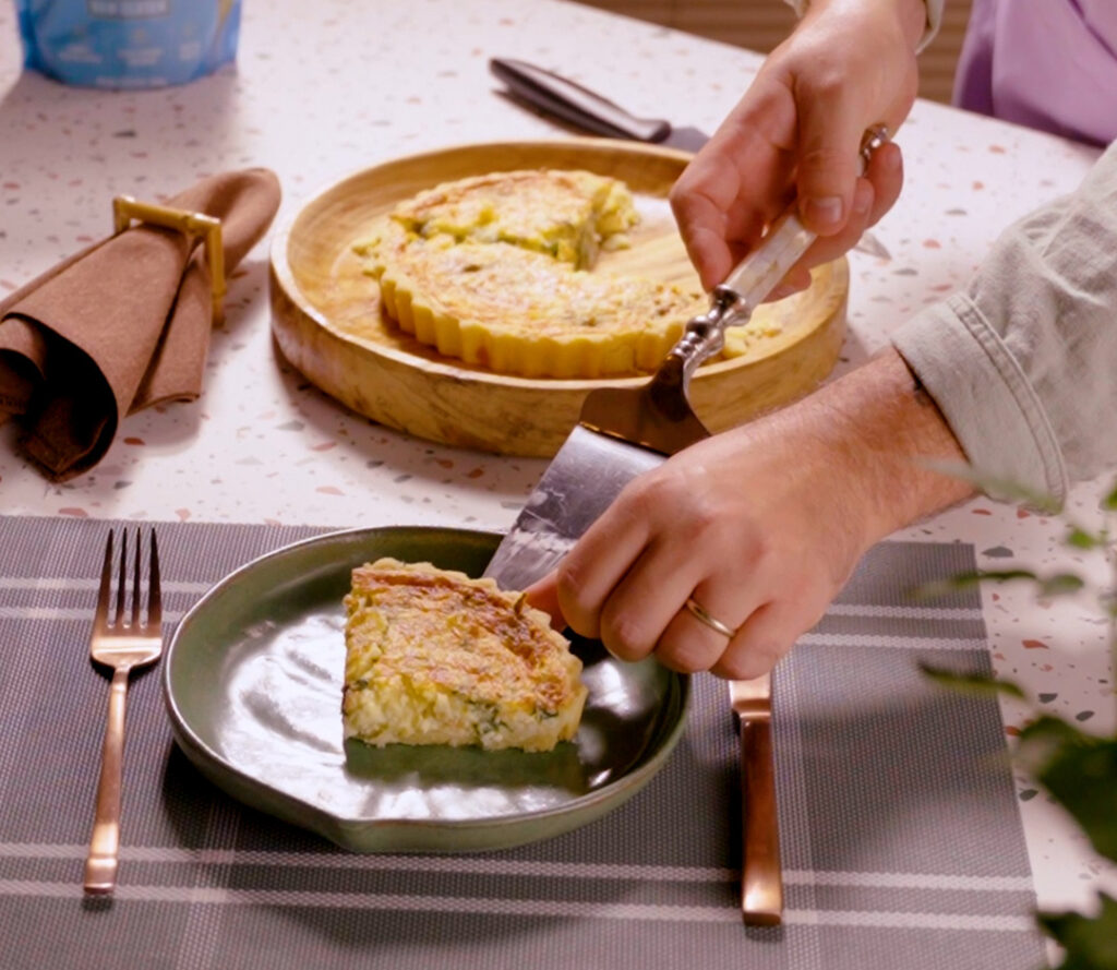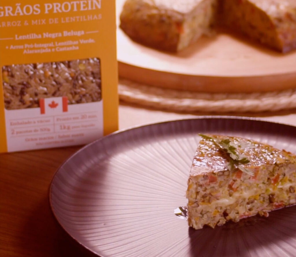 Torta de arroz de frigideira com cebola, alho-poró e queijos
