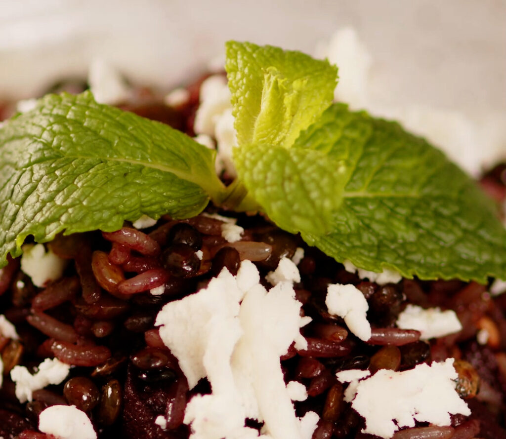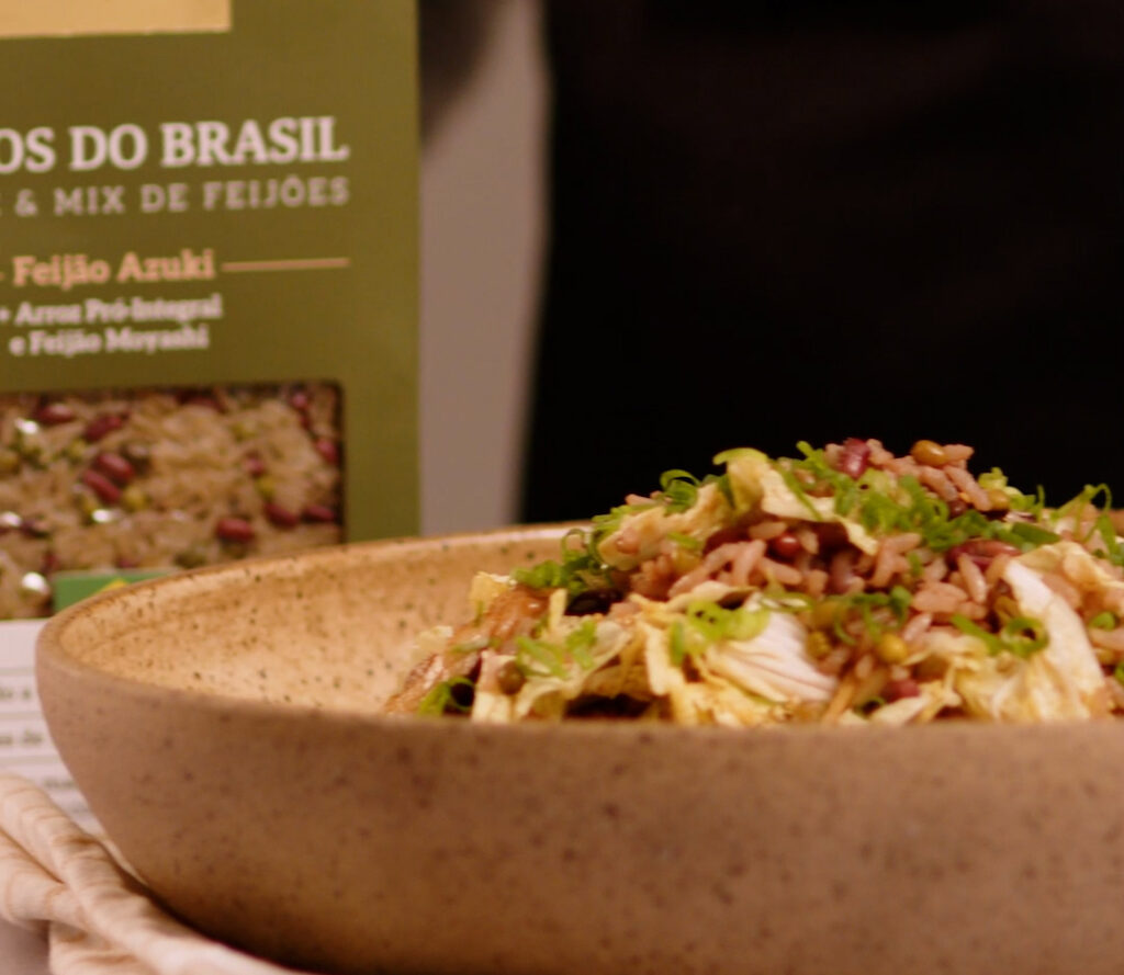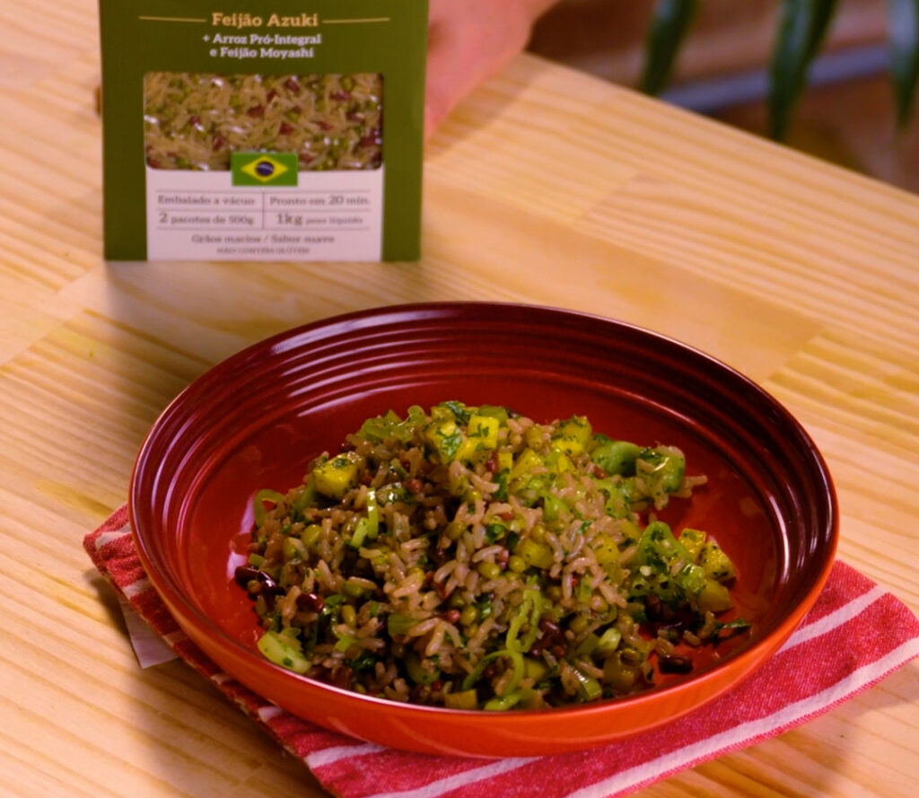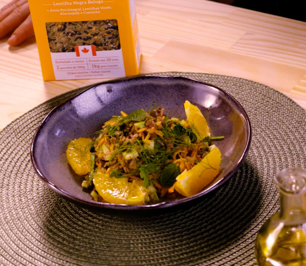 Salada de arroz com cenoura, abobrinha, laranja e ervas frescas